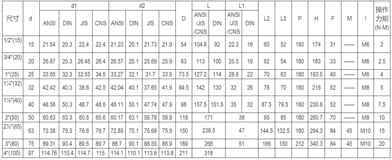 2、尺寸:1/2''-4'';20mm-110mm;DN15-DN100